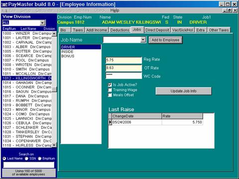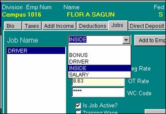 NOTE: it is possible to have jobs with same name, that is why if the job is under different departments, the name for the job could be "Driver-East" and "Driver-West" for reporting purposes. PayMaster recognizes jobs in the database by its number rather than name.