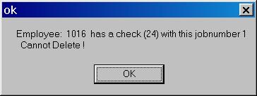Note: You can not delete a job in the employee screen if a check has been processed for that job on that employee. If you try, you will get the following warning: