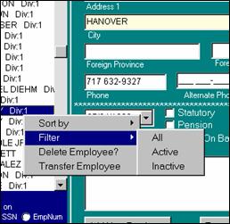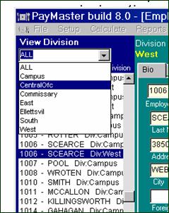 In addition, you can sort by, Last Name, Employee number, SSN (social security number), [Division: Last name], [Job: Last name], Hire date. Under "View Division", you may select view "ALL" the divisions or specify a particular division.