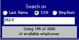 At the bottom of the left panel, you will note the employee count and available employees. (determined at time of purchase) along with a "search" area by Last Name, SSN and EmpNum (employee number). When searching by SSN please enter the dashes to get accurate results.